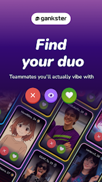 Gankster Duos är en social och kommunikationsapp för Android som hjälper spelare att hitta likasinnade medspelare. Appen låter användare svepa genom profiler av spelare som matchar deras stil, energi och tillgänglighet. Med detaljerade profiler kan spelare se mer om varandra och hitta personer de verkligen trivs med att spela med. Genom att skapa en Duo kan användare chatta, ringa och spela tillsammans, vilket skapar en mer personlig och social spelupplevelse.